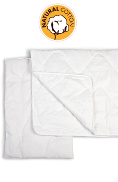 Ir šiuo atveju puikus pasirinkimas bus jau anksčiau aprašytosios natūralios medžiagos – medvilnė, satinas ir bambukas. Nors antklodėlė ir pagalvė bus ploni, šie audiniai išsaugos mažyliui šilumą, bus natūralios ir leis jaustis patogiai.